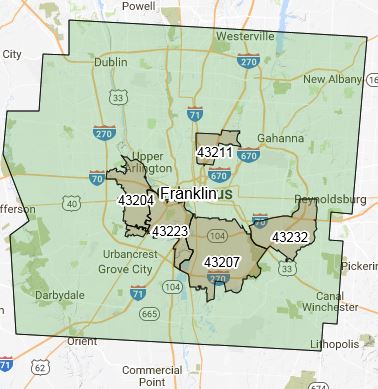 The zip codes with the five highest number of overdose deaths were 43207, 43223, 43211, 43232, and 43204.