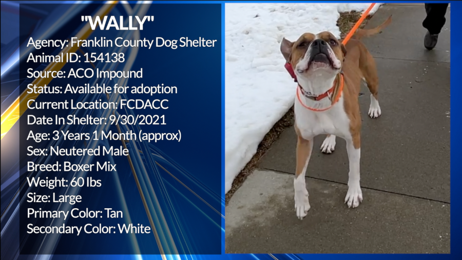 For instance, Wally is a five-year-old boxer. He showed up at the center in September. When he’s in his room, he can come off as aggressive because people are coming up, touching the windows on his door, and walking away.