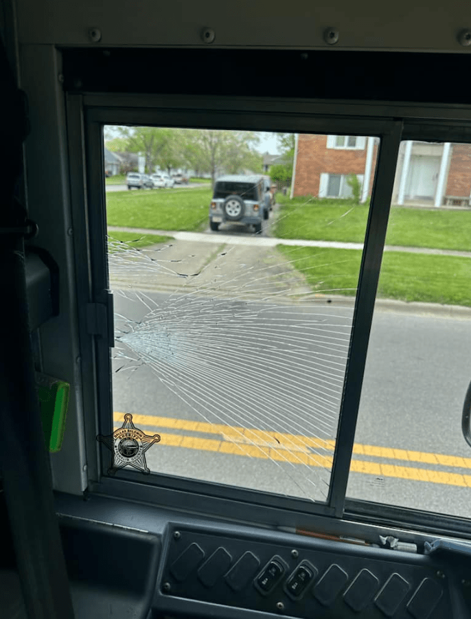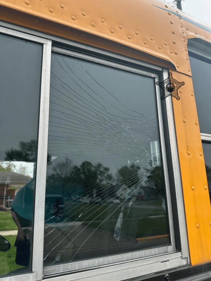 The bus driver’s window was originally open, but she closed it as the man approached the bus, Wood said. The man struck the driver-side school bus window resulting in it cracking, then drove off. The bus driver and 22 students were not injured during the incident.