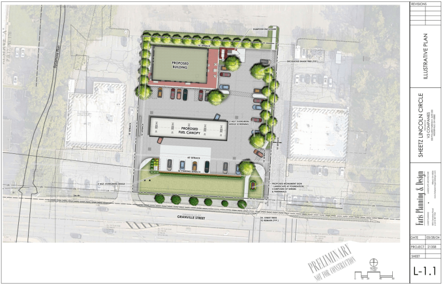 Another issue cited in the review is that the gas pumps and parking for the Sheetz would be street-facing, not located in the rear of the building as called for in the land use plan.