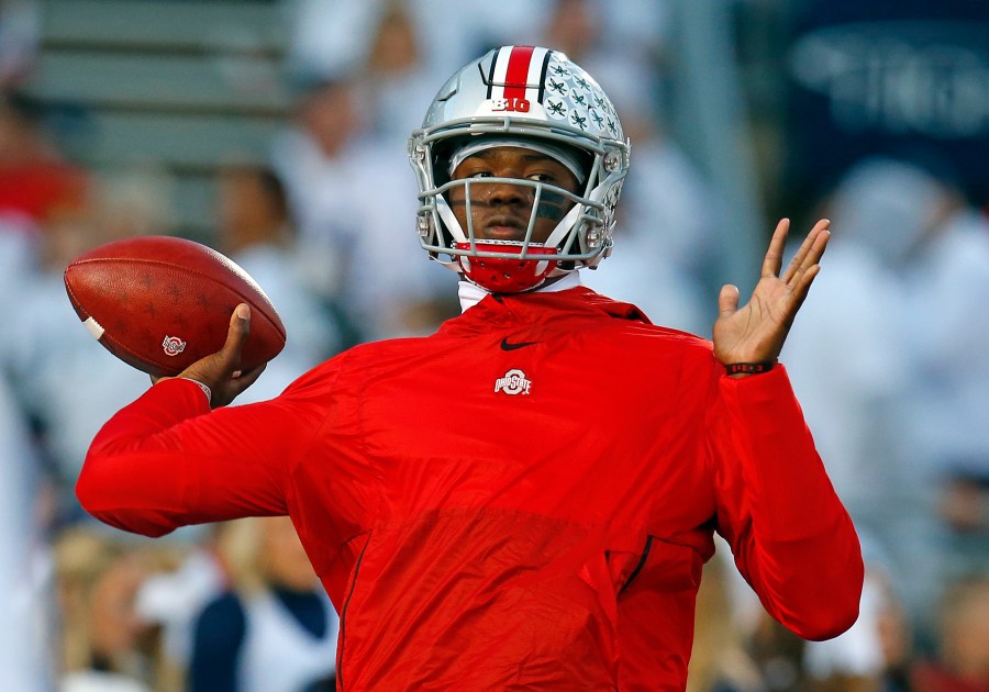 STATE COLLEGE, PA – SEPTEMBER 29: Dwayne Haskins #7 of the Ohio State Buckeyes warm up before the game against the Penn State Nittany Lions on September 29, 2018 at Beaver Stadium in State College, Pennsylvania. (Photo by Justin K. Aller/Getty Images)