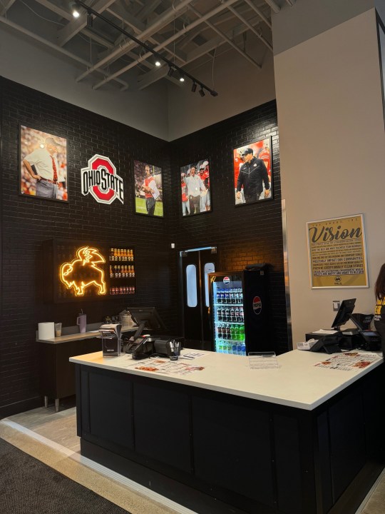 The Grove City location offers several amenities for customers from outdoor seating, flat screen televisions for sporting events, to showcasing local sports team memorabilia and more.