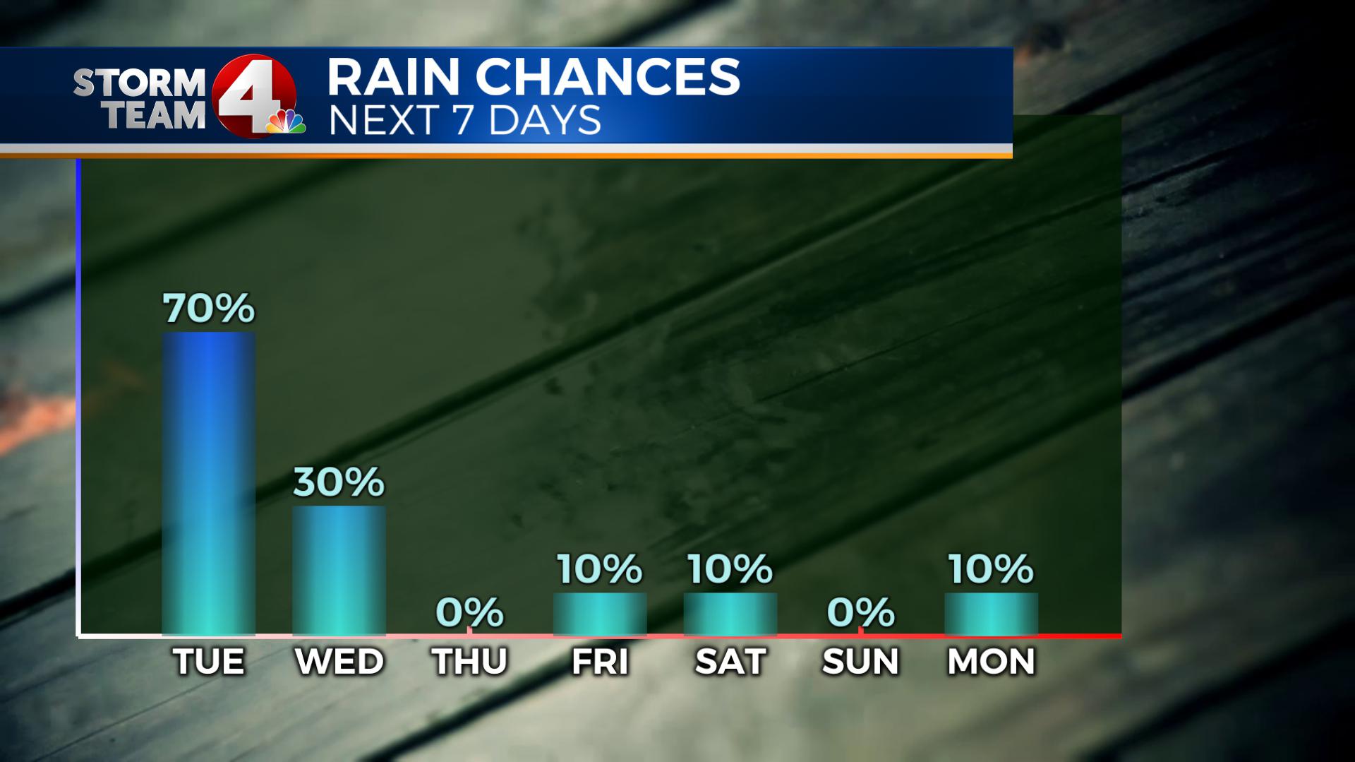 An approaching cold front may spark off a few isolated showers heading into the weekend, but at this point the chance is pretty slim.