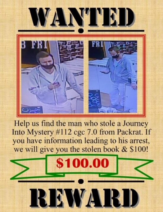 Packrat Comics focuses on the positive during these situations, but prosecutes every theft. “For the people who help us find this gentleman, we are offering a reward. You will get to keep the comic that’s found and we will give you $100.00. Our objective is not to get the book back…. We want those who help us to keep it.”