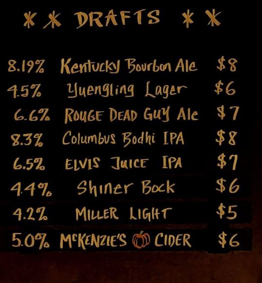 According to their social media page, the bar offers a variety of drinks on tap including ales and IPAs. They also offer specialty cocktails and seasonal items. Their food menu also ranges from fries and onion rings, to sandwiches and salads.