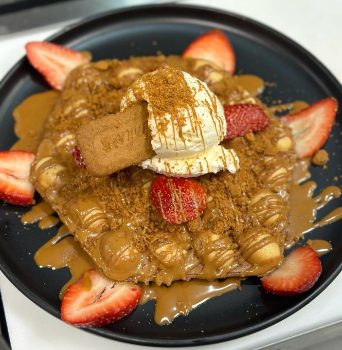 The menu at the eatery is full of treats including breakfast options from crepes and waffles, which can be ordered with fruits, chocolate syrups and more on top.