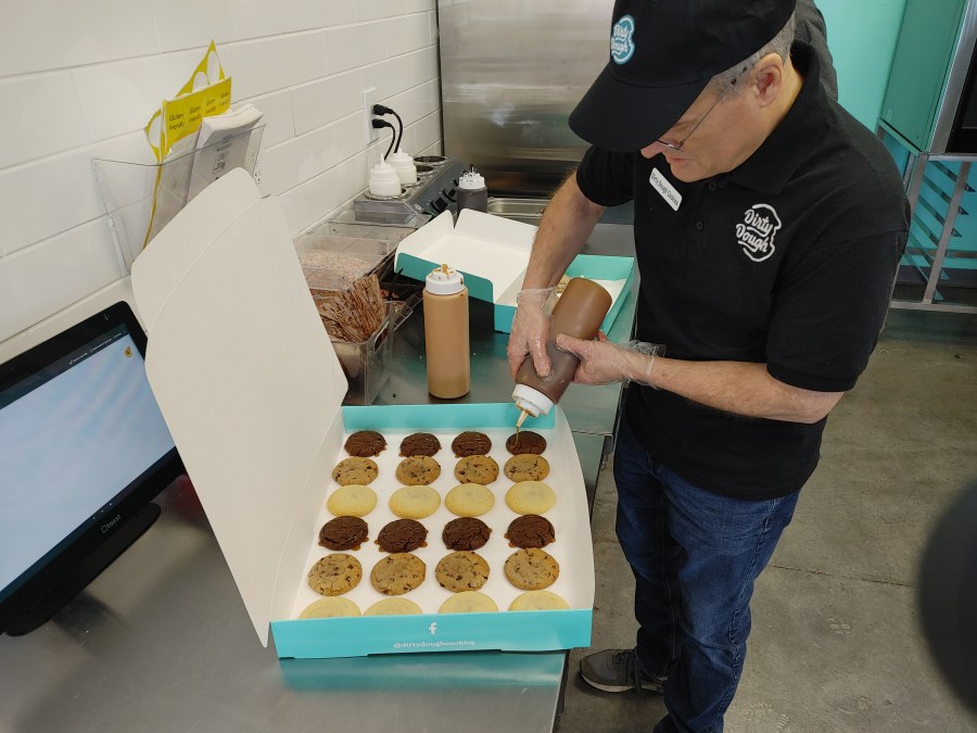 Roger, who supervises the store’s operations, is particularly fond of the technology that Dirty Dough made available to them. The company uses specialized ovens to bake its cookies.