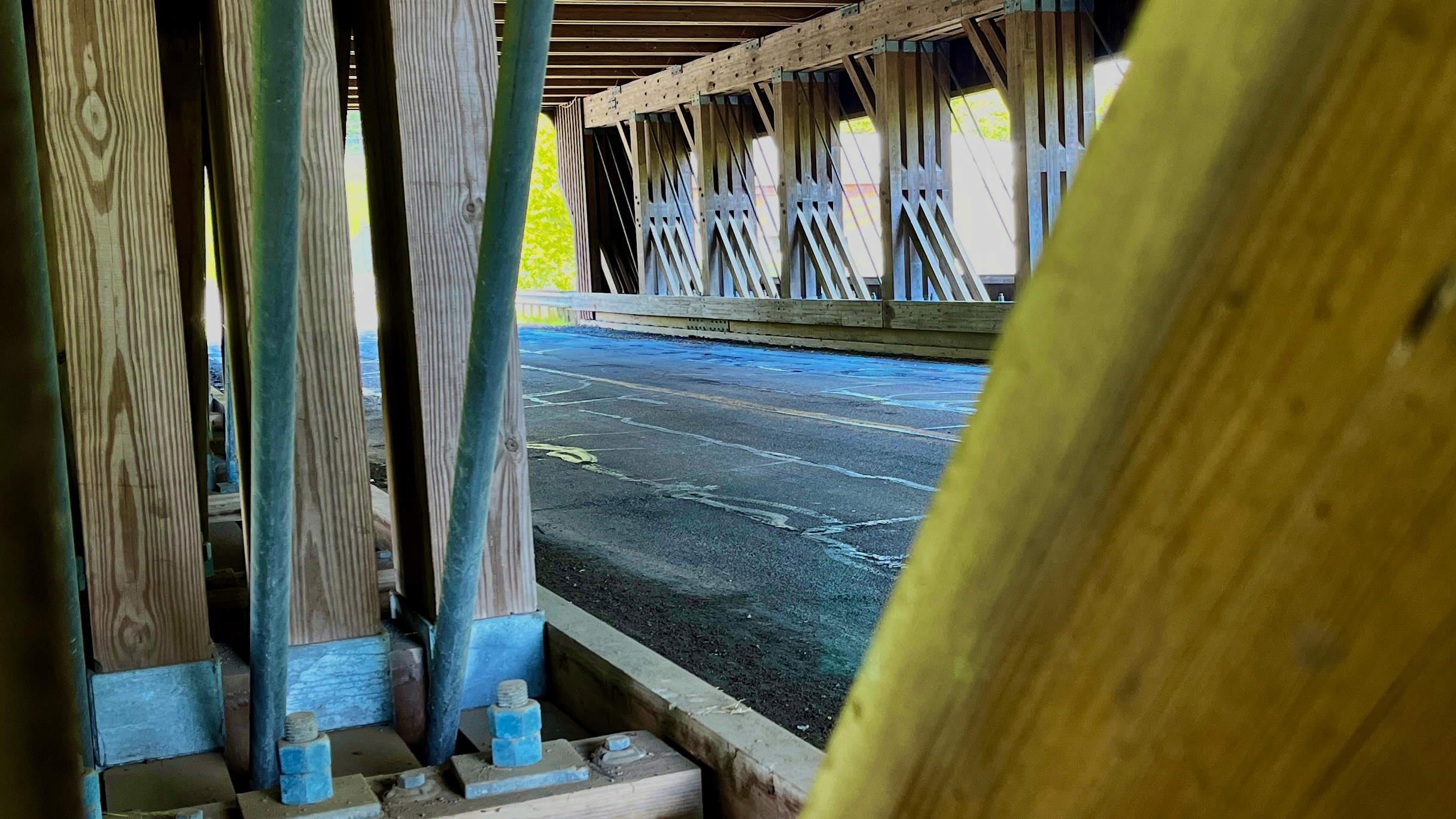 Walkway on the west side of the covered bridge.