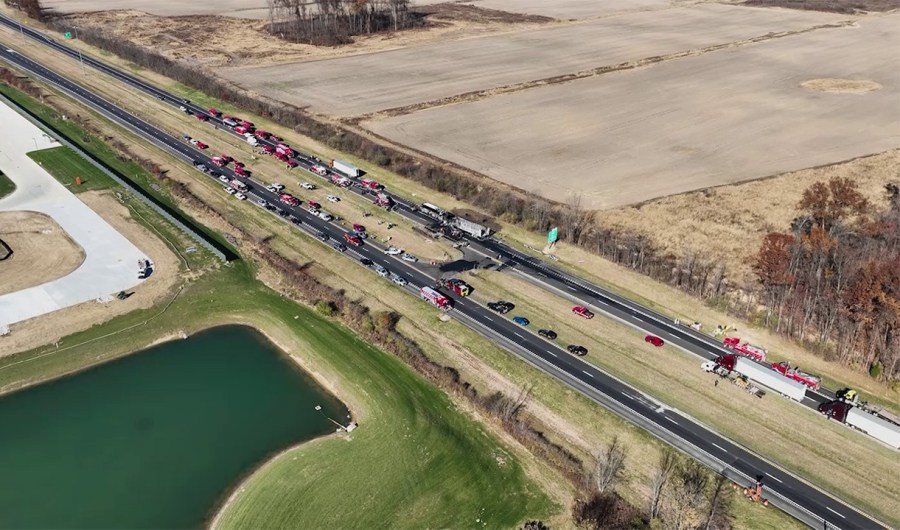 The Ohio State Highway Patrol reported the accident took place about 8:50 a.m. in the westbound lanes, and at least 20 people were taken to seven area hospitals. Images of the immediate aftermath sent to NBC4 showed the cab of the semi ablaze and rammed into the back of the bus.