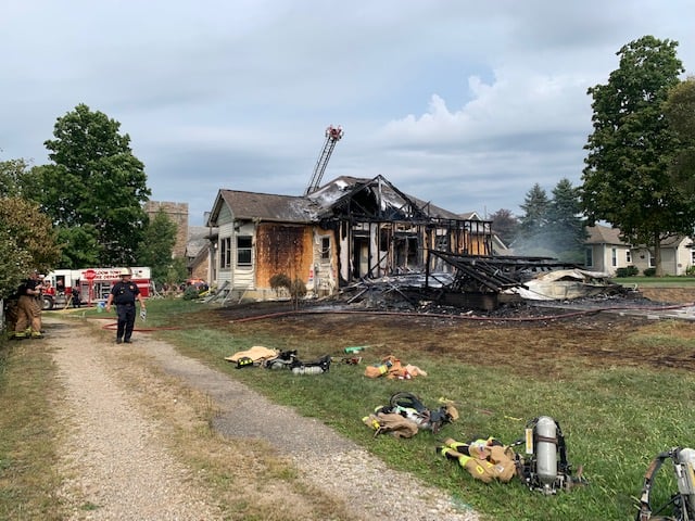 The fire department said it appears the fire started in a garage in the rear of the home, and then spread to the house. It said the house is a total loss.