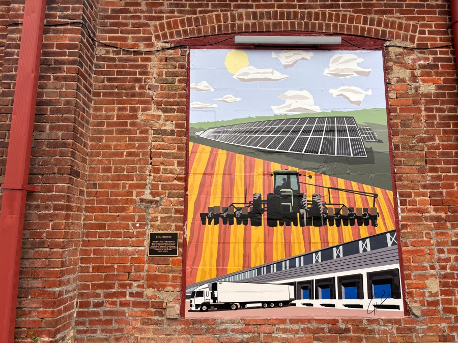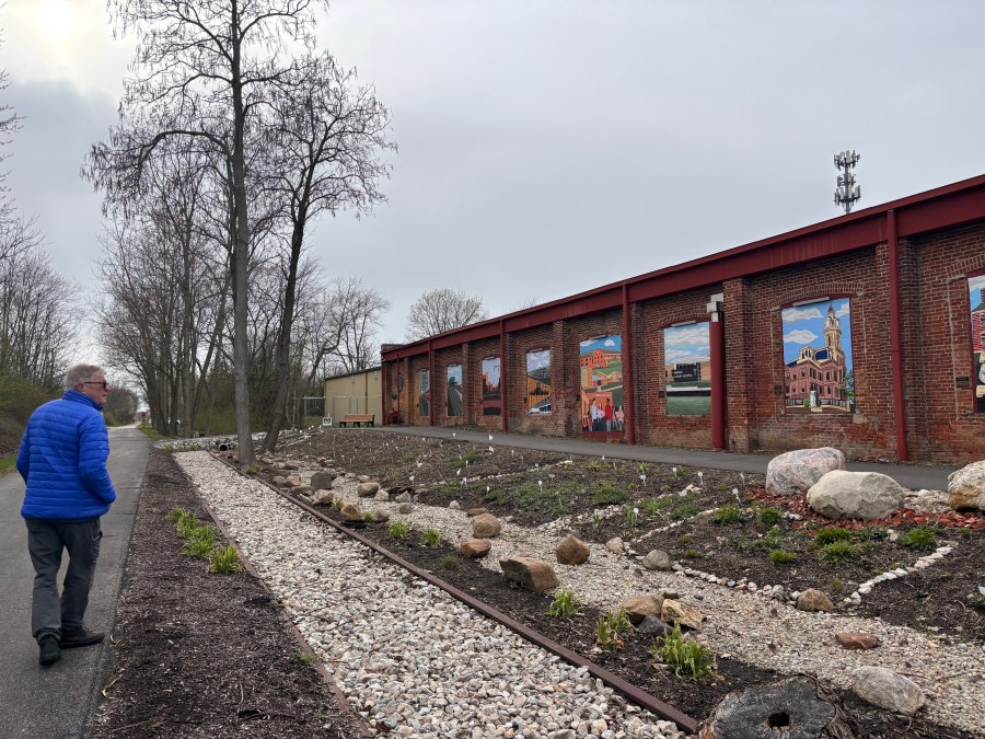 Designed by local artist Clay Hurley, the murals tell the history of the area, from the mastodons who roamed the land thousands of years ago to the U.S. presidents who stayed at the old hotel in town. Next to the building is a garden teeming with pollinator plants and plants native to the area, including Black-eyed Susan and dense blazing star.