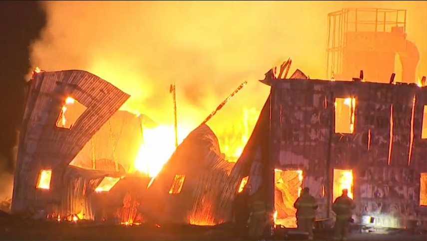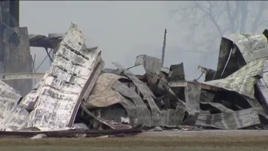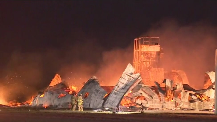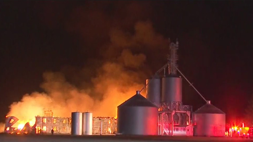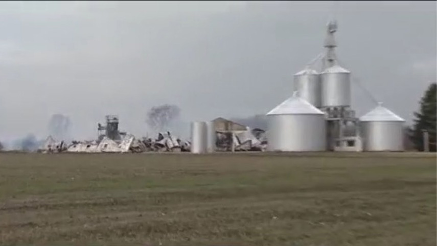 The report said 60 firefighters from eleven different area departments, including 10 trucks designed to carry water, responded to the scene, was contained to the main building behind the silos on the property. NBC4 reported the glow from the flames could be seen a few miles away.