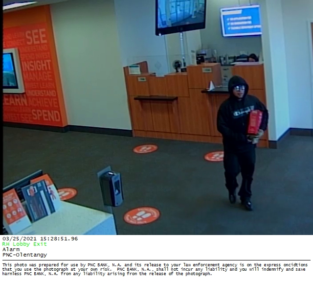 According to police, the man entered the PNC Bank on the 2900 block of Olentangy River Road at approximately 3:30 p.m. on March 25.