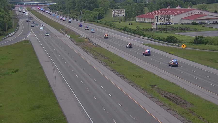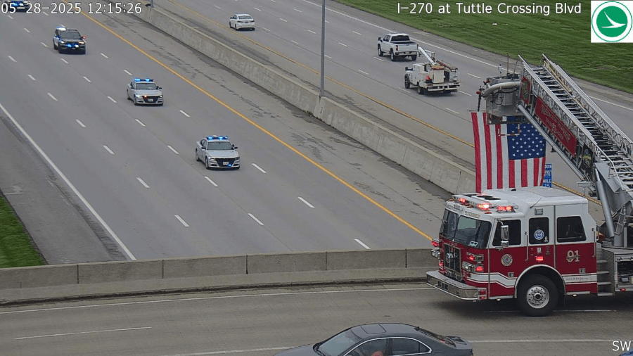 The procession began at the coroner’s office in Dayton, and an escort headed east toward Columbus. The caravan went north around Columbus on I-270 during the lunch hour before joining I-71 to State Route 61 for Mount Gilead.