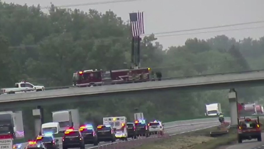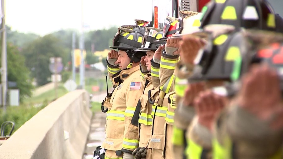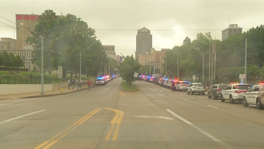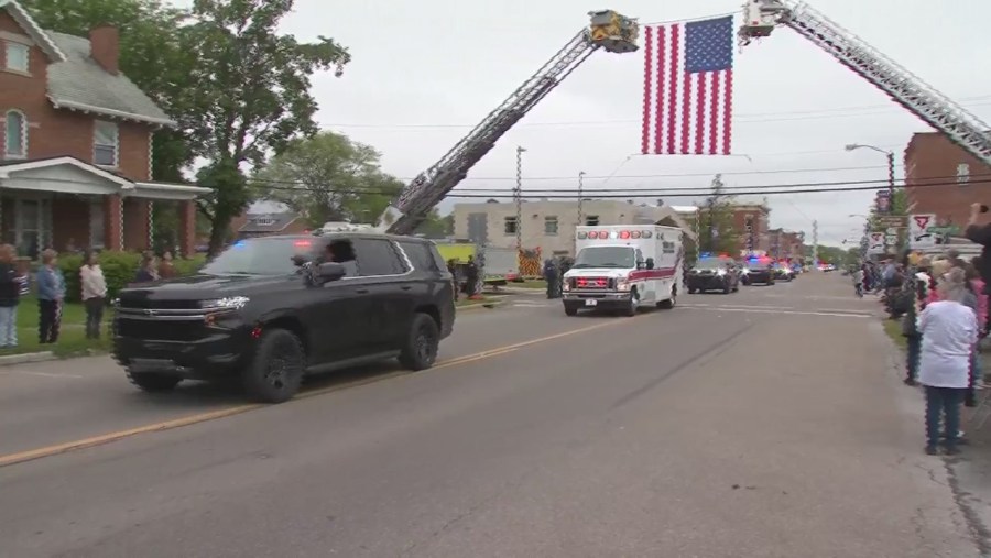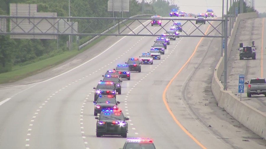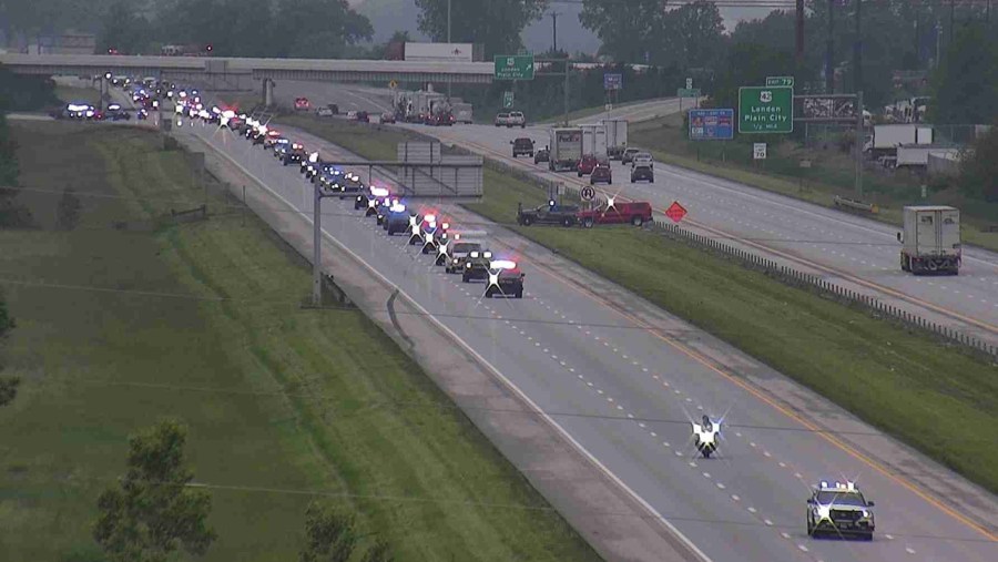 COLUMBUS, Ohio (WCMH) – First responders lined overpasses and residential roads from Dayton to Mount Gilead on Wednesday morning and afternoon, paying tribute to a sheriff’s deputy who was fatally shot on Memorial Day.