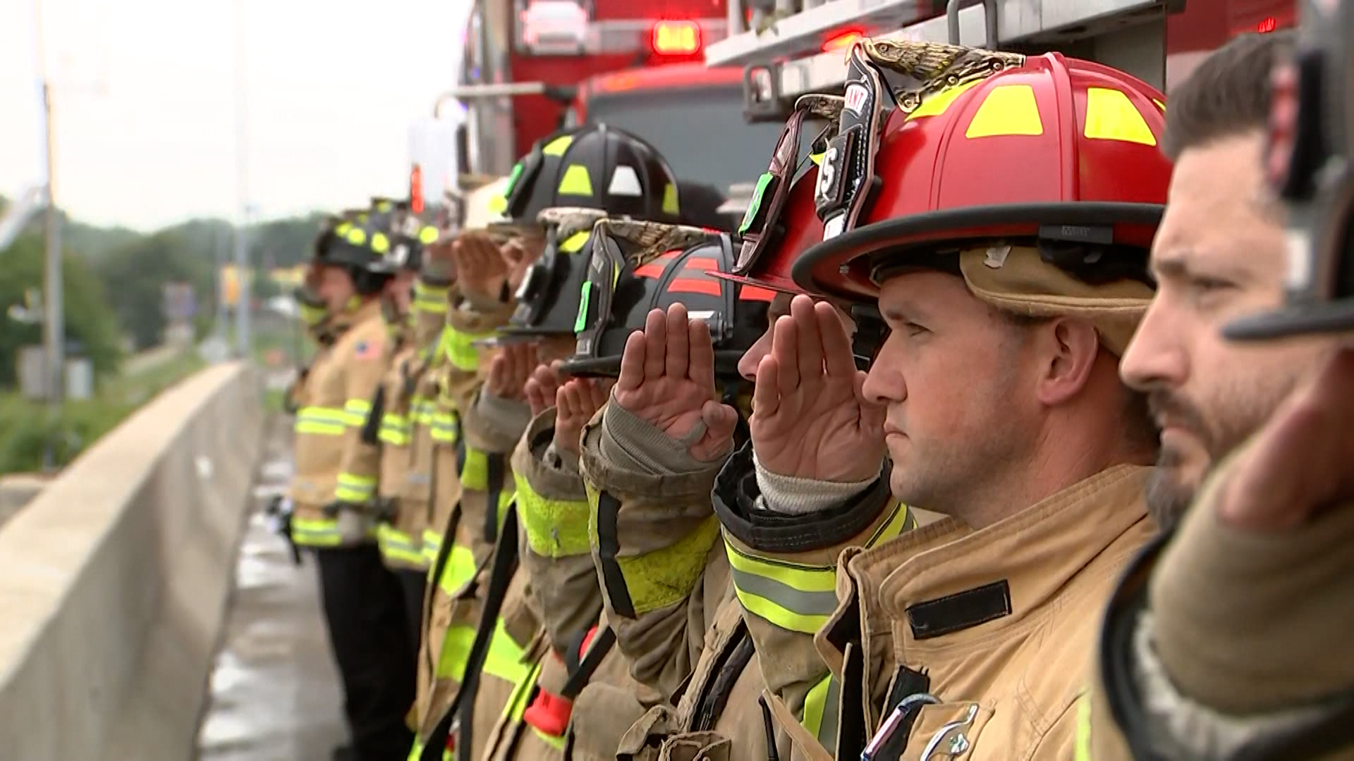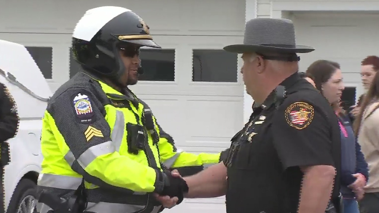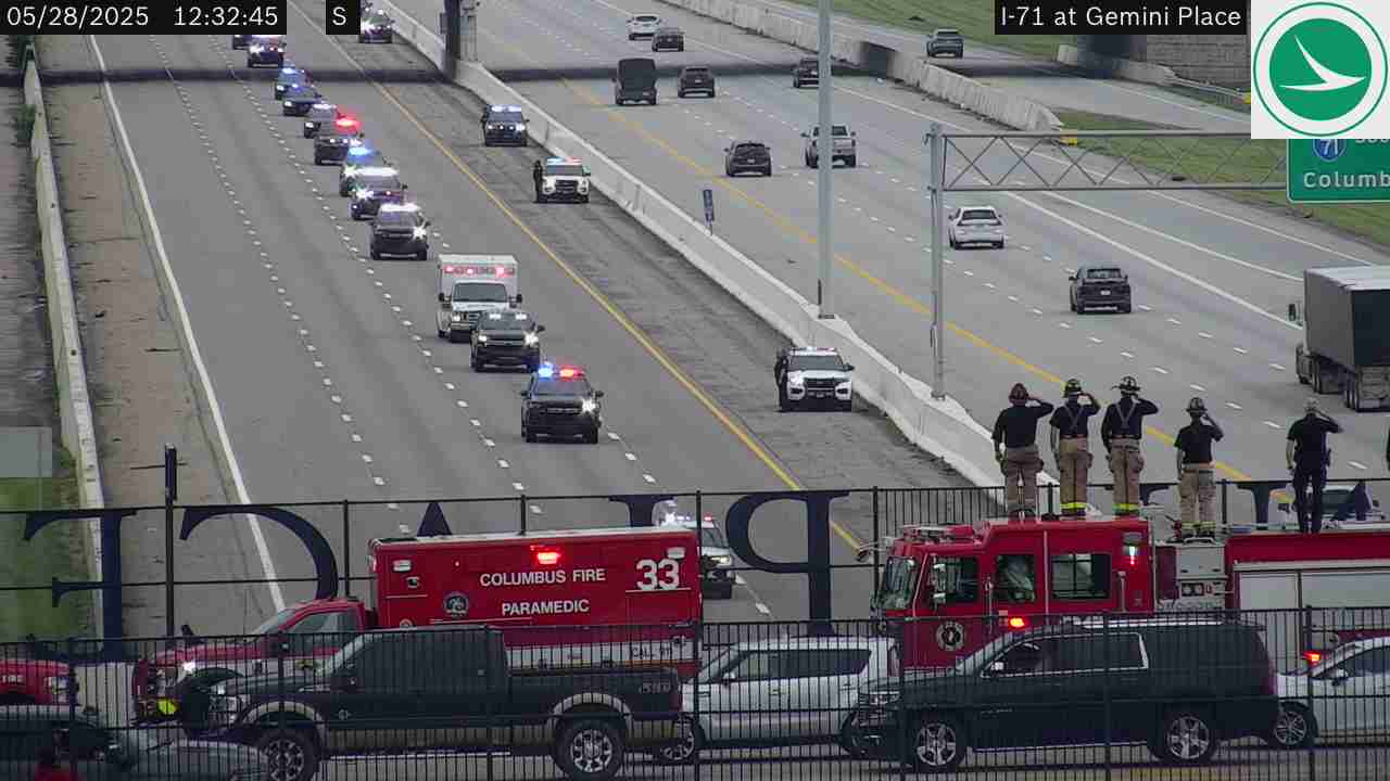 COLUMBUS, Ohio (WCMH) – First responders lined overpasses and residential roads from Dayton to Mount Gilead on Wednesday morning and afternoon, paying tribute to a sheriff’s deputy who was fatally shot on Memorial Day.