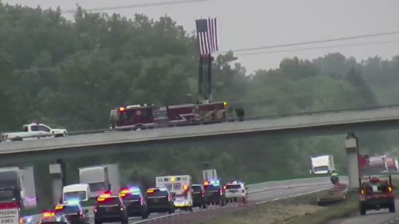The procession began at the coroner’s office in Dayton, and an escort headed east toward Columbus. The caravan went north around Columbus on I-270 during the lunch hour before joining I-71 to State Route 61 for Mount Gilead.