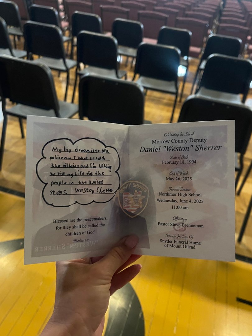 Deputy Daniel “Weston” Sherrer will be laid to rest Wednesday in Marion. A public service to honor and celebrate Sherrer took place during the morning and afternoon at Northmor High School near Galion, with former sheriff and current pastor Steve Brenneman officiating.