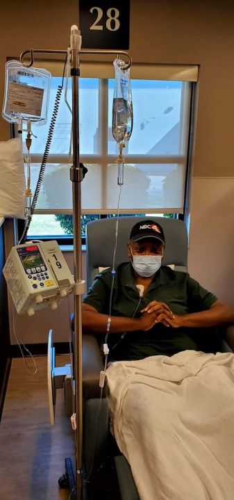 On Friday, Bob posted a picture on Facebook of himself receiving chemotherapy treatment. In the photo, he has an obvious smile behind a face mask while proudly wearing his NBC4 hat.