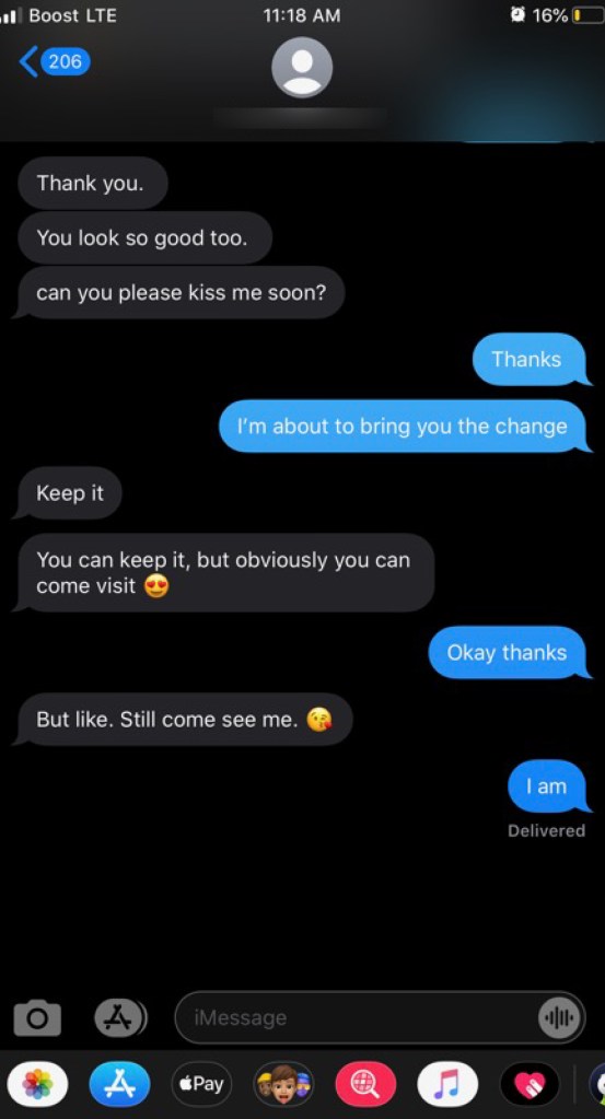 The screengrab also shows the last text that reads “But like still come see me,” followed by an emoji blowing a kiss.