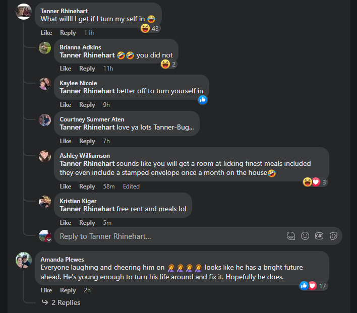 When Newark police previously put out a Facebook post asking for help finding Rhinehart, the 20-year-old took the opportunity to tease them. He referenced an apparent close call he had earlier as they looked for him.