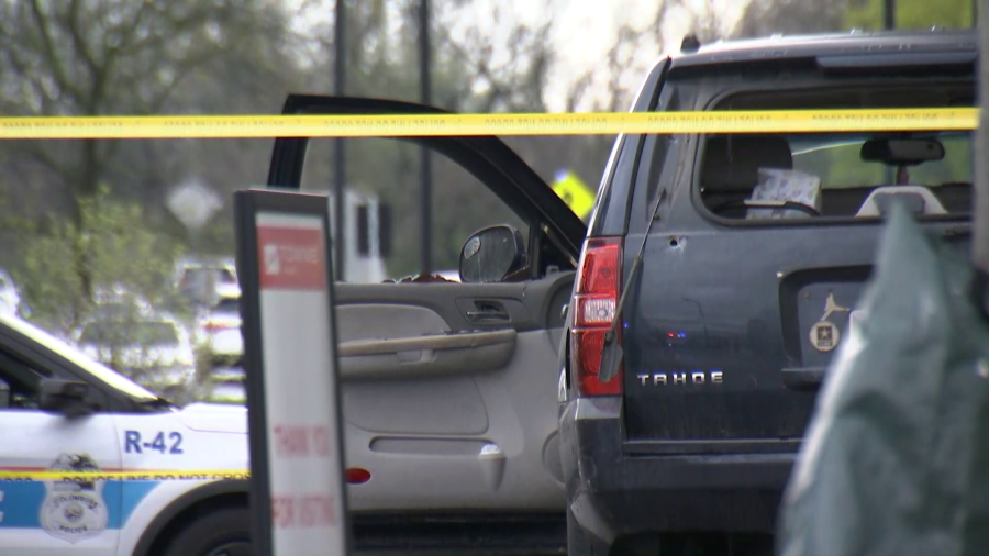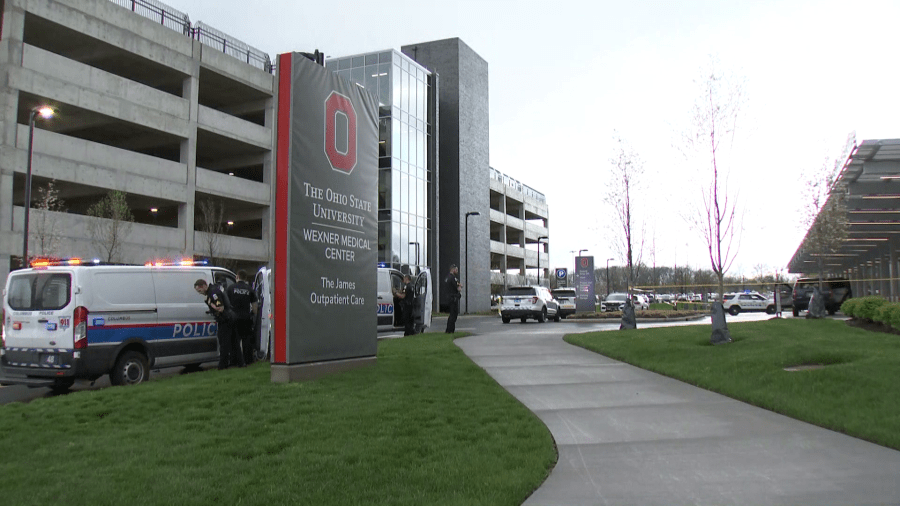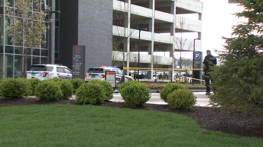 Photos taken at the scene showed both Ohio State University police and Columbus officers’ cars parked at the hospital. The agencies had crime scene tape set up near guideposts for the campus. Another photo showed a car within the crime scene tape had its back window broken out, and visible bullet holes on the rear car door.