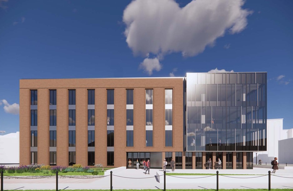 One of the university’s older academic buildings and housing the College of Education and Human Ecology, Campbell Hall will undergo a $61.2 million facelift. The university approved nearly $50 million in construction costs to renovate 115,000 square feet of classrooms, office areas and computer labs and to replace aging roofing, windows and building systems. Initial renderings show proposed greenspace on the east and west sides of the buildings, with concrete seating areas and pedestrian walkways.