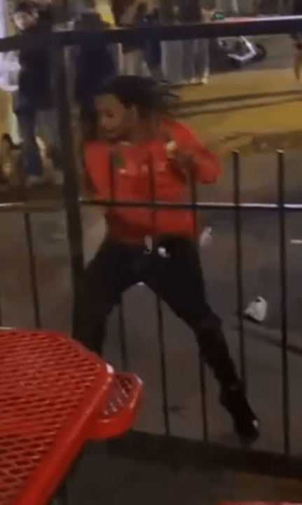A group of four individuals approached the group of three and a verbal altercation began. One of the male suspects threw an object at a female victim, which led to the suspects repeatedly kicking and punching other victims, including one suspect using a tire iron to hit a victim in the head.