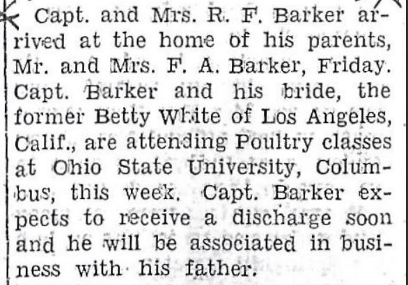 The story goes deeper than that. A wedding announcement showed White was taking poultry classes at Ohio State University in Columbus with her dashing husband, Captain Richard Barker.