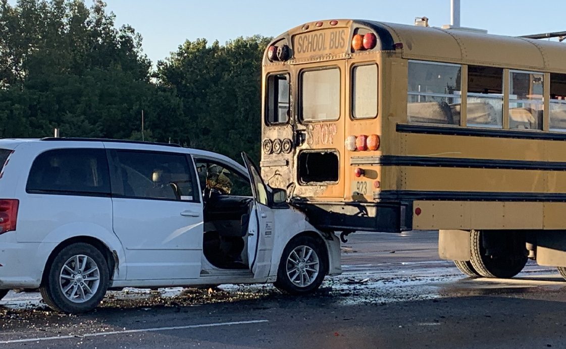 According to the Franklin County Sheriff’s Office, a mini van ran into the back of a Groveport Madison school bus at the intersection of Alum Creek Drive and Groveport Road, just south of Interstate 270 in Obetz. The crash, which occurred at around 6:45 a.m., caused the car to catch fire.