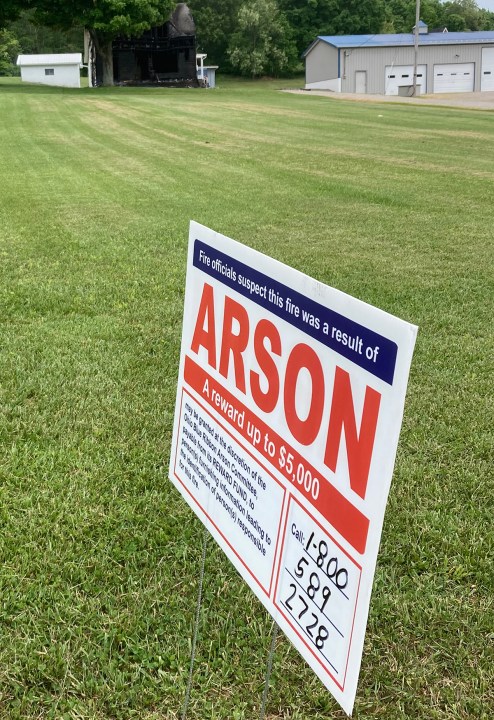 The Blue Ribbon Arson Committee, an Ohio group that assists law enforcement in investigating possible arsons, is offering a $5,000 reward to anyone with information that leads to the arrest and conviction of a suspect.