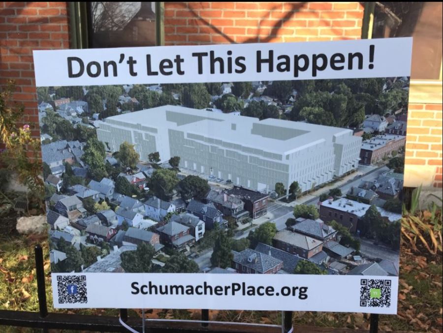 Brenda Gischel, of the Schumacher Place Civic Association board, said the group supports responsible development but had concerns over density, height, and parking. When the group took a vote of 405 residents, 390 voted against rezoning, and 15 voted for it, she said in the meeting.