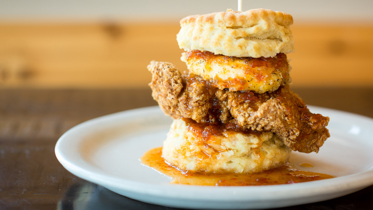 The Nashville-based brand serves comfort food with a modern twist, like the Food Network-featured “Squawking Goat” biscuit sandwich with battered chicken strips, goat cheese and pepper jelly.
