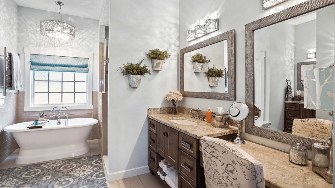 On the opposite of the first level, the master bedroom features an en suite bathroom with a walk-in shower, a free-standing tub, two vanities and a walk-in closet. The bedroom connects to a screened-in porch on the deck’s top level. A butler’s pantry, a laundry room and two additional bedrooms round out the first floor.