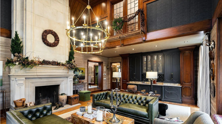 The 10,463-square-foot home was built in 1927 and updated extensively in 2014, leaving a modern home with timeless details. The home has seven bedrooms, nine baths, nine fireplaces, and five garage spaces.