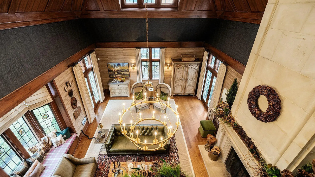 The 10,463-square-foot home was built in 1927 and updated extensively in 2014, leaving a modern home with timeless details. The home has seven bedrooms, nine baths, nine fireplaces, and five garage spaces.