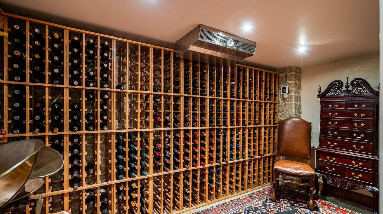 The lower level is especially suited to entertaining or a family night in. The massive space features a Ralph Lauren-inspired billiards room with a full bar. The lower level also has a family room with stone walls and a floor-to-ceiling wine cellar. Another office rounds off the lavish lower level.