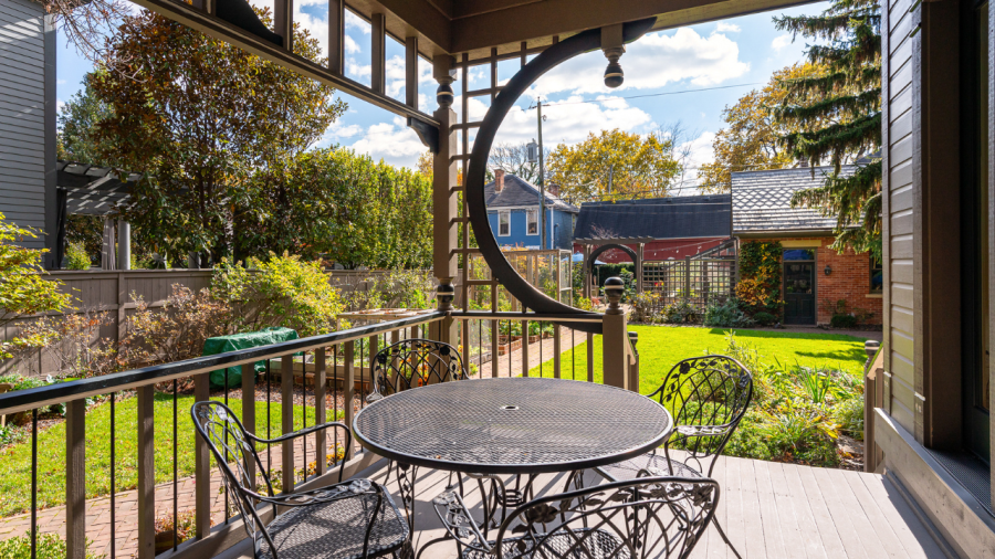 Up the stairs, private bedroom suites with connecting bathrooms overlook the back garden and Schiller Park. A custom 2,500-bottle wine cellar built entirely in Mahogany wood with original brick walls completes the home.