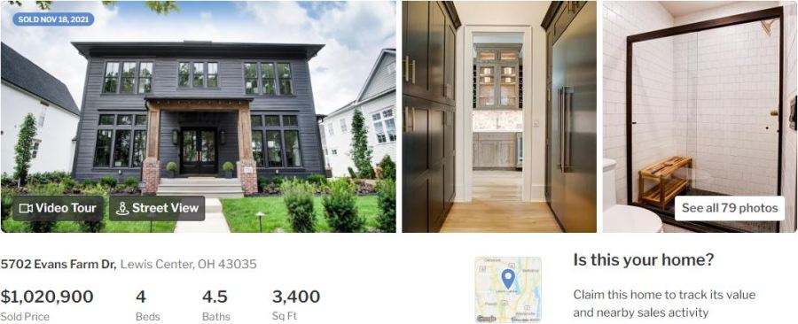 6. This home at 5702 Evans Farm Drive in Lewis Center sold for $1,020,900 on Nov. 8.