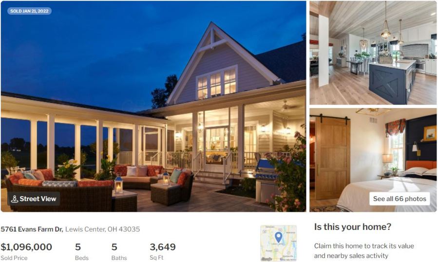 4. This home at 5761 Evans Farm Drive in Lewis Center sold for $1,096,000 on Jan. 25.