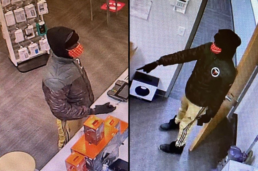 The men fled the store with an undisclosed amount of money and 25 i-Phone 12s.