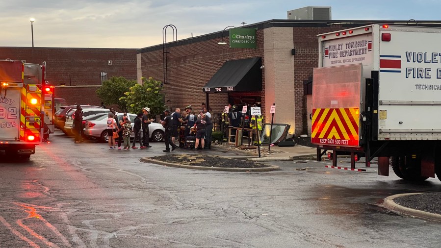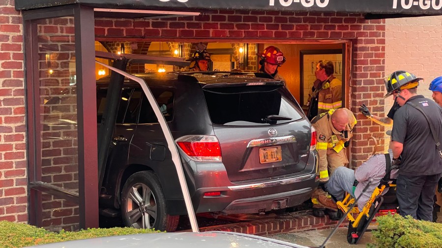 Photos from the scene show the car drove into the “to go” area of the restaurant. At approximately 7:30 p.m., the car was removed from the building.