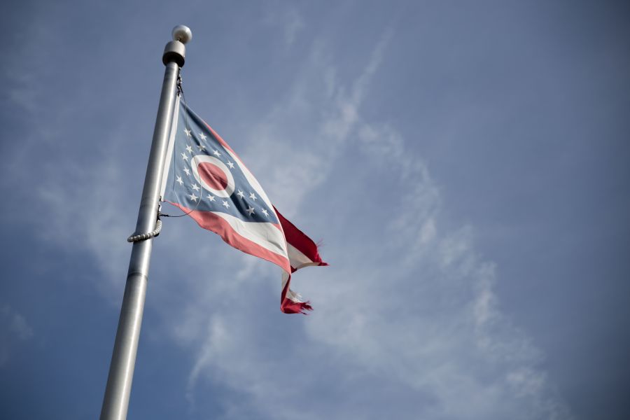 The Ohio flag is seen in front of the Miami Valley Career Technology Center School on March 13, 2020 in Englewood, Ohio. - The Governor of Ohio, Mike DeWine, issued a statement on March 12, 2020 to close all schools until early April. (Photo by Brad LEE / Brad LEE / AFP / AFP) (Photo by BRAD LEE/Brad LEE / AFP/AFP via Getty Images)