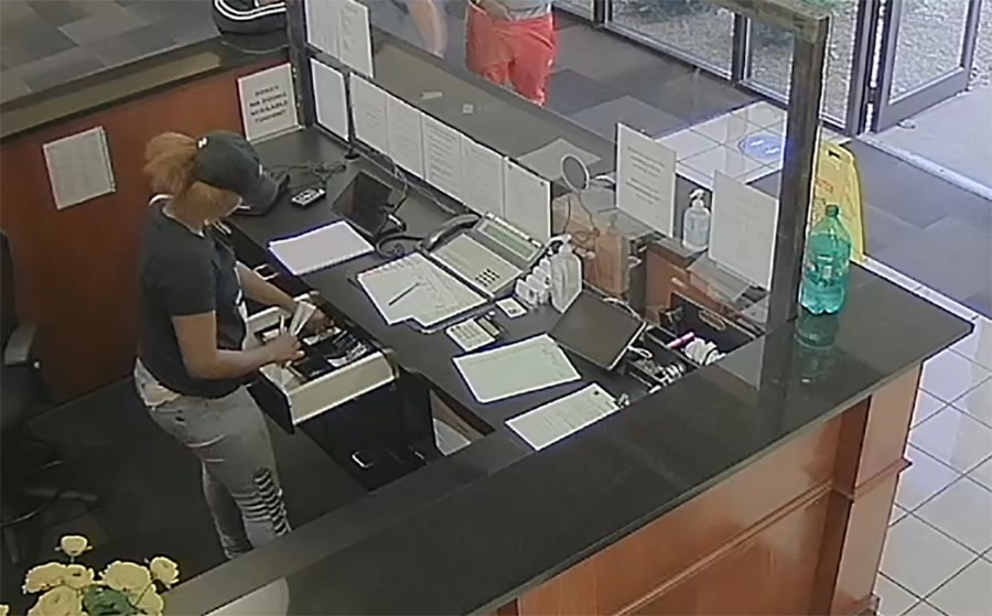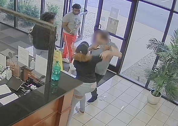 According to police, the woman then jumped over the counter and the three suspects then ran toward the door. The clerk attempted to stop them but was shoved through the doors and out of the motel.