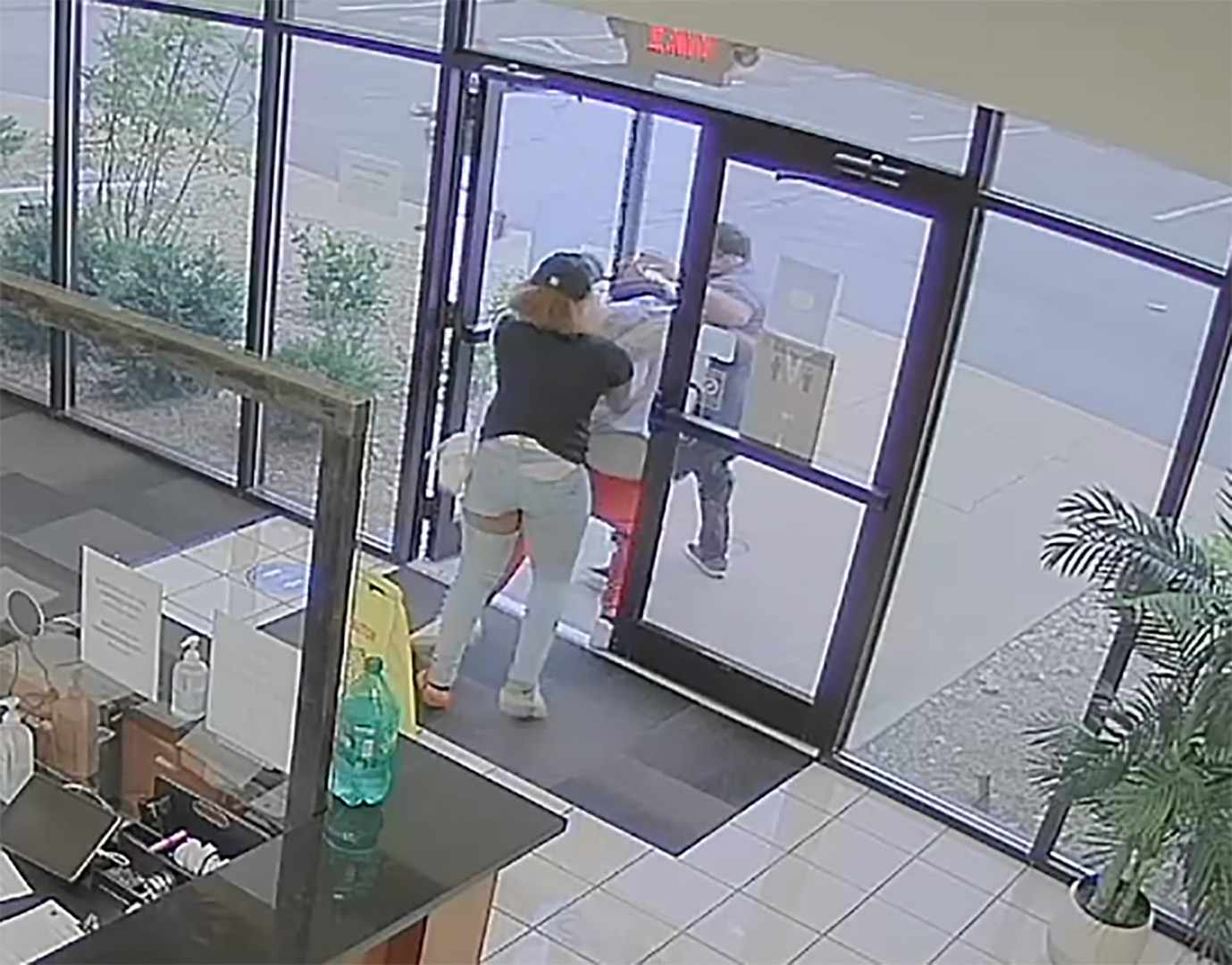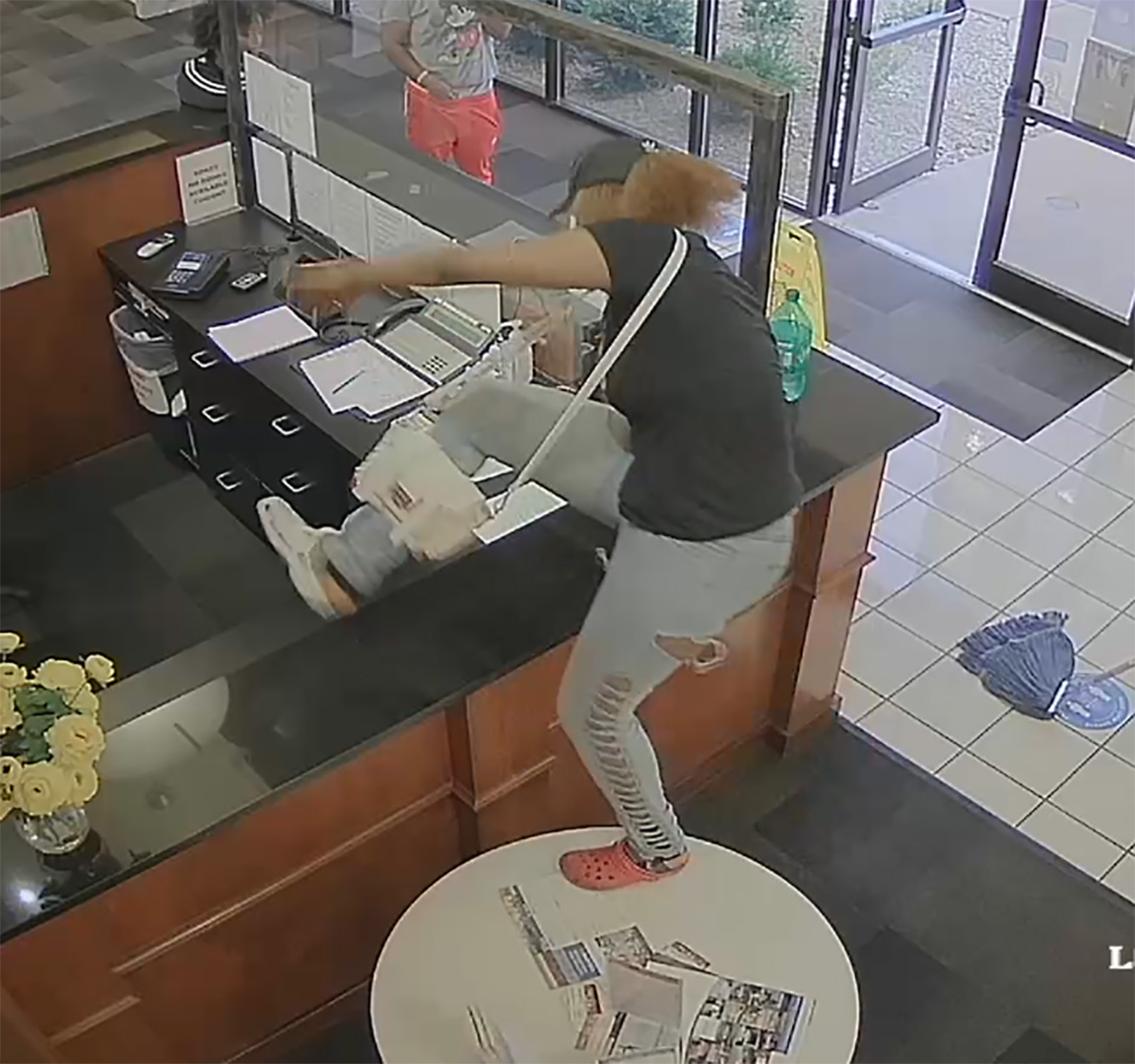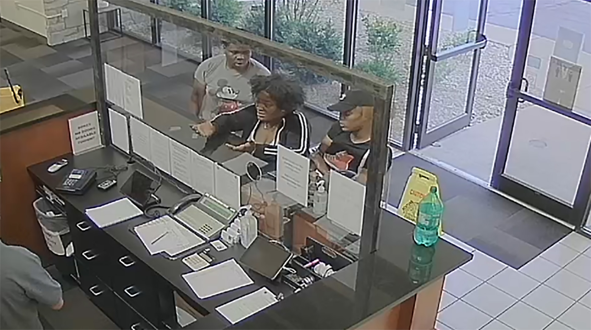 According to police, the woman then jumped over the counter and the three suspects then ran toward the door. The clerk attempted to stop them but was shoved through the doors and out of the motel.