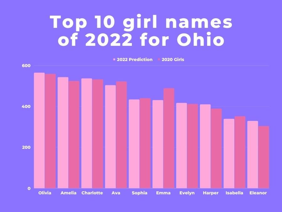 Favorites for Ohioans, Harper and Eleanor, are not predicted to be on the national top 10 girl names of 2022.
