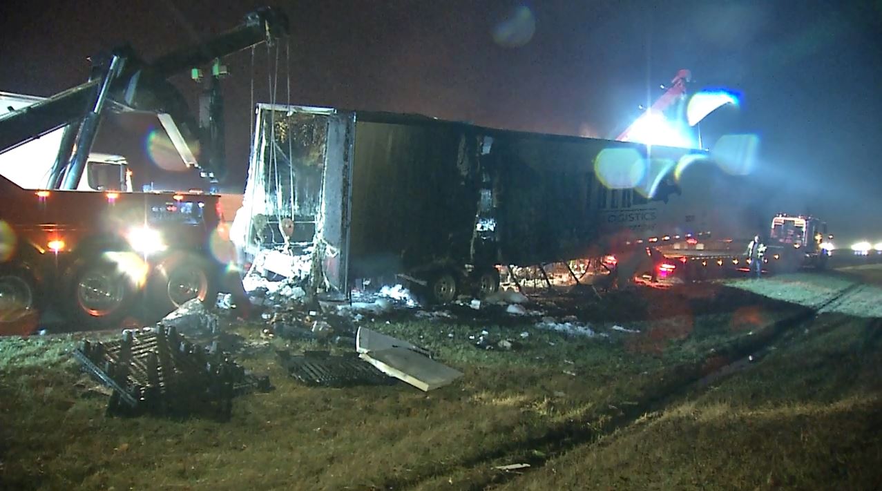 The closure lasted throughout the night and continues into the morning as crews work to remove the burned trailer.