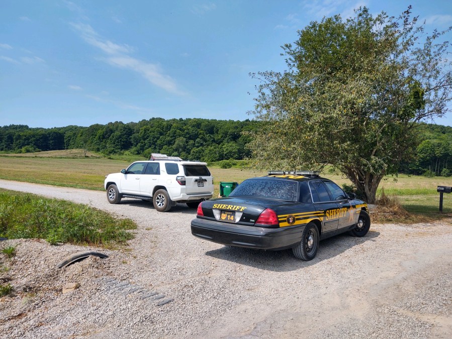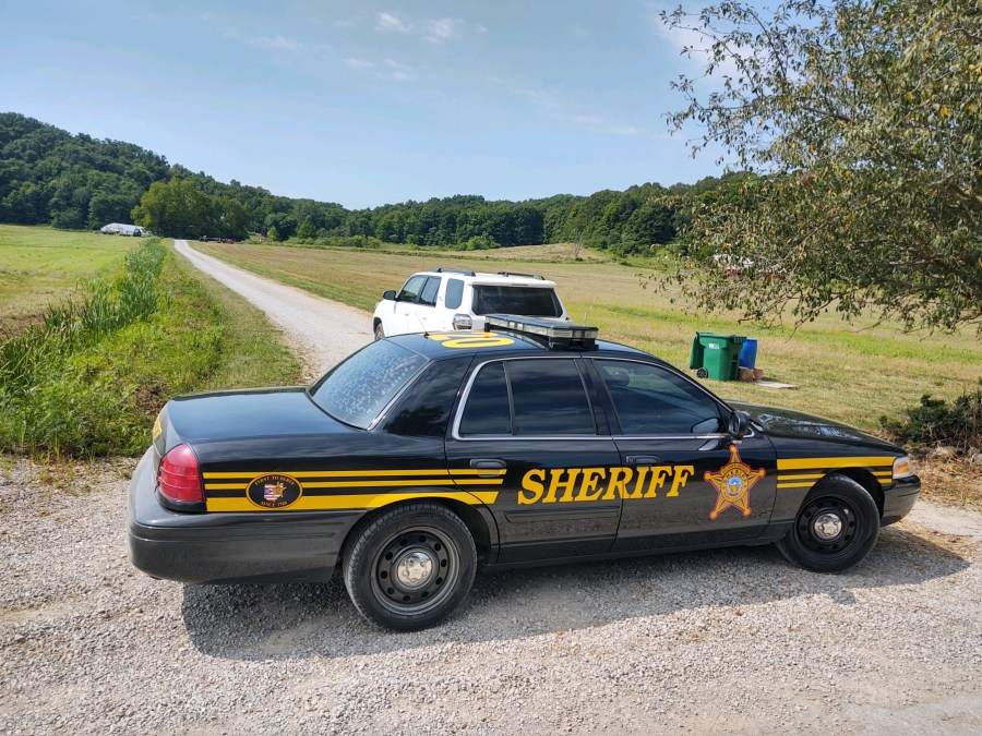 A Perry County Sheriff’s Office cruiser sits at the end of the driveway at a Larry Householder property in Perry County.