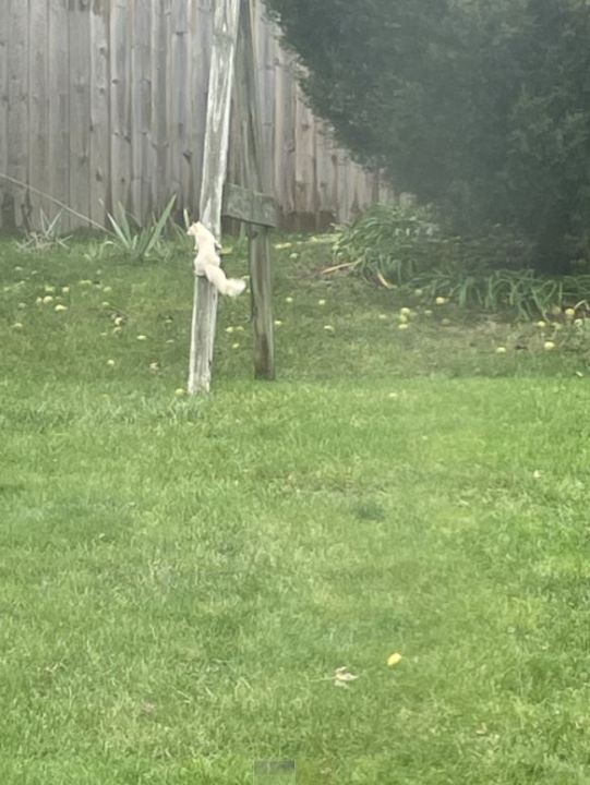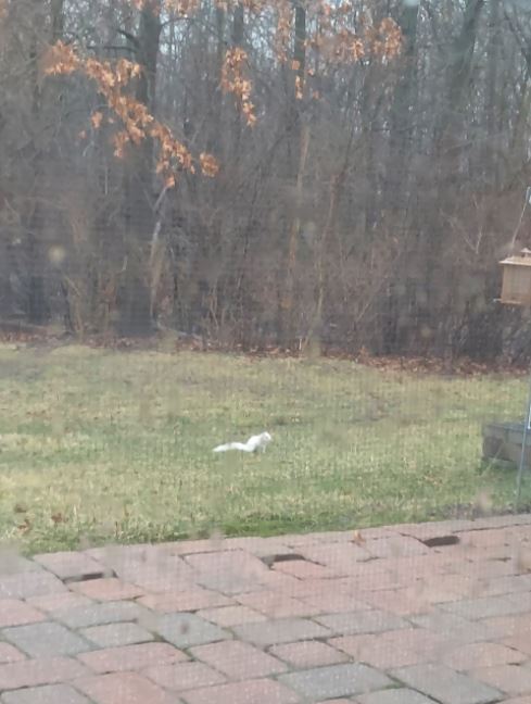 “We always get a lot of entertainment from our white squirrels — whether they are climbing trees, chasing grey squirrels, trying to get in the bird feeders, or eating the peanuts my mom sometimes puts out for them,” Langlois said. “They are pretty fun to watch!”