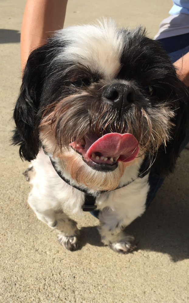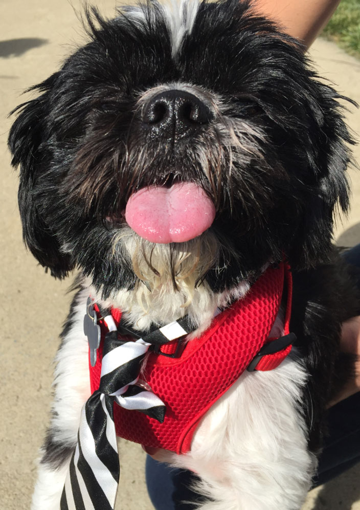 A-Jay is a four-and-a-half-year-old black and white Shi Tzu. He’s friendly and outgoing, and he enjoyed playing with Max. He came to Fuzzy Pawz after his owner could no longer care for him. He’s been receiving the proper vetting and is ready to go home with a new family that he can snuggle up with. Make no mistake, A-Jay has a sense of style and loves wearing his power tie.